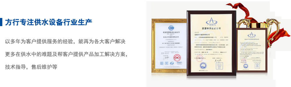 鹽城方行集團有限公司秉承“務實、誠信、拼搏、創(chuàng)新”的企業(yè)精神,經(jīng)歷了近數(shù)十年的歷程取得了跨越式的發(fā)展。高起點才會有更高的品質(zhì),優(yōu)雅的環(huán)境,先進的設 備,高效的團隊,造就了一批批優(yōu)質(zhì)的產(chǎn)品。堅持質(zhì)量、用戶至上的宗旨,公司全面通過了ISO國際質(zhì)量體系認證,是制造供水成套設備廠家 之一。經(jīng)悉心打造,已享有較高的知名度,產(chǎn)品遍布全國,不斷研發(fā)全新產(chǎn)品,滿足消費者的需求 | |